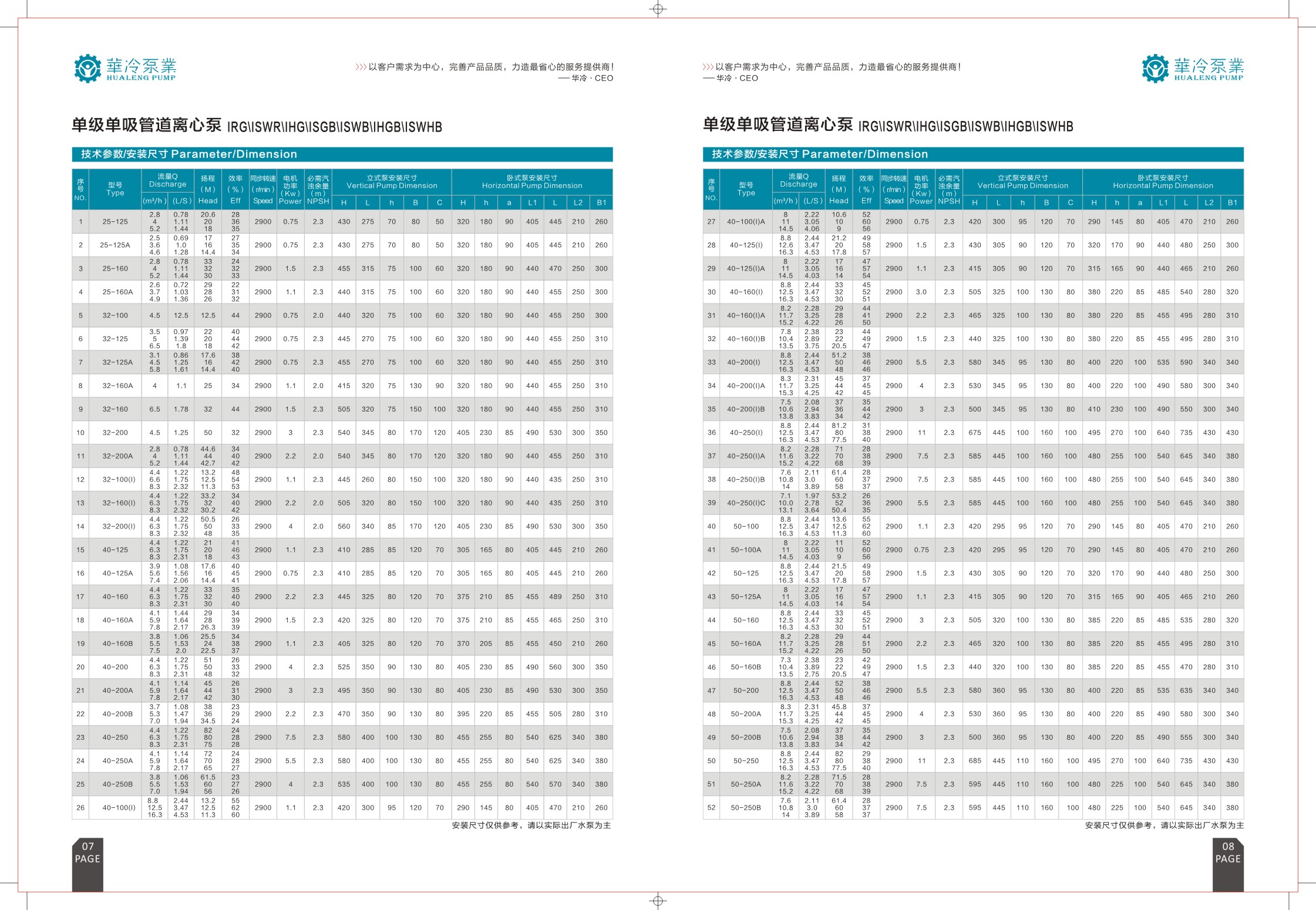 华冷泵业 冷冻泵/冷却泵/循环管道泵