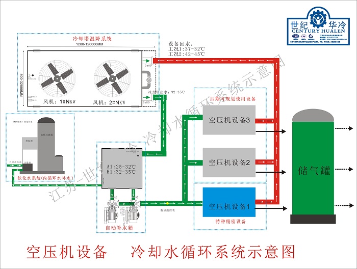 大多数设备厂家对压缩空气机组循环冷却水的基本要是:要保持清洁无杂质,压力不低于0.2MPa,进、排水温度差在10℃左右,对水要进行软化处理。