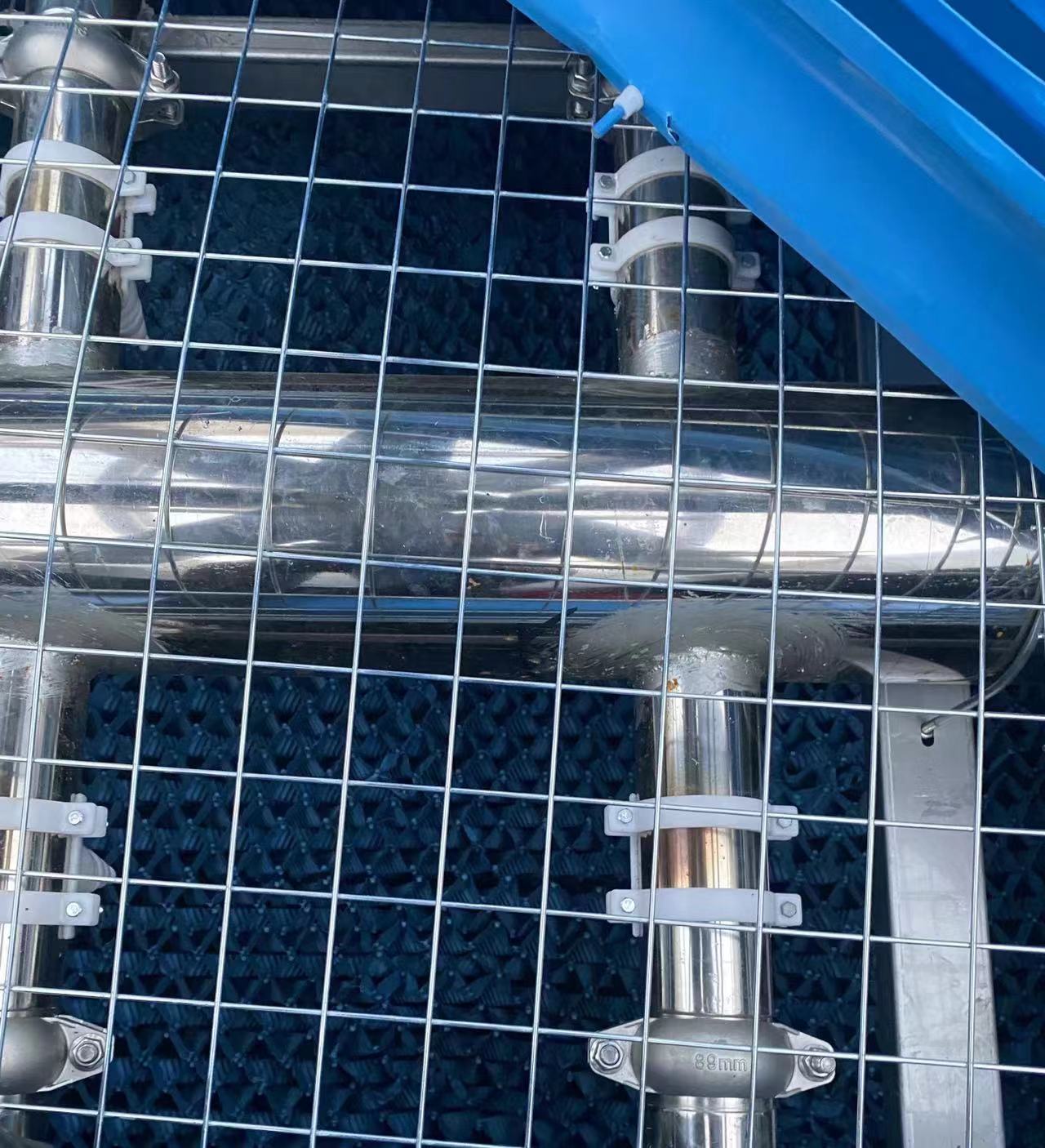 喷淋系统采用ABS/PP材质的三溅低压喷头,口径大,不堵塞;喷水均匀,无中空现象;水呈雾滴状喷出,不影响配风的均匀度;适用水力负荷范围宽,具有自排功能,喷头与配水管的连接为丝扣连接,可确保系统长期安全运行。 |
