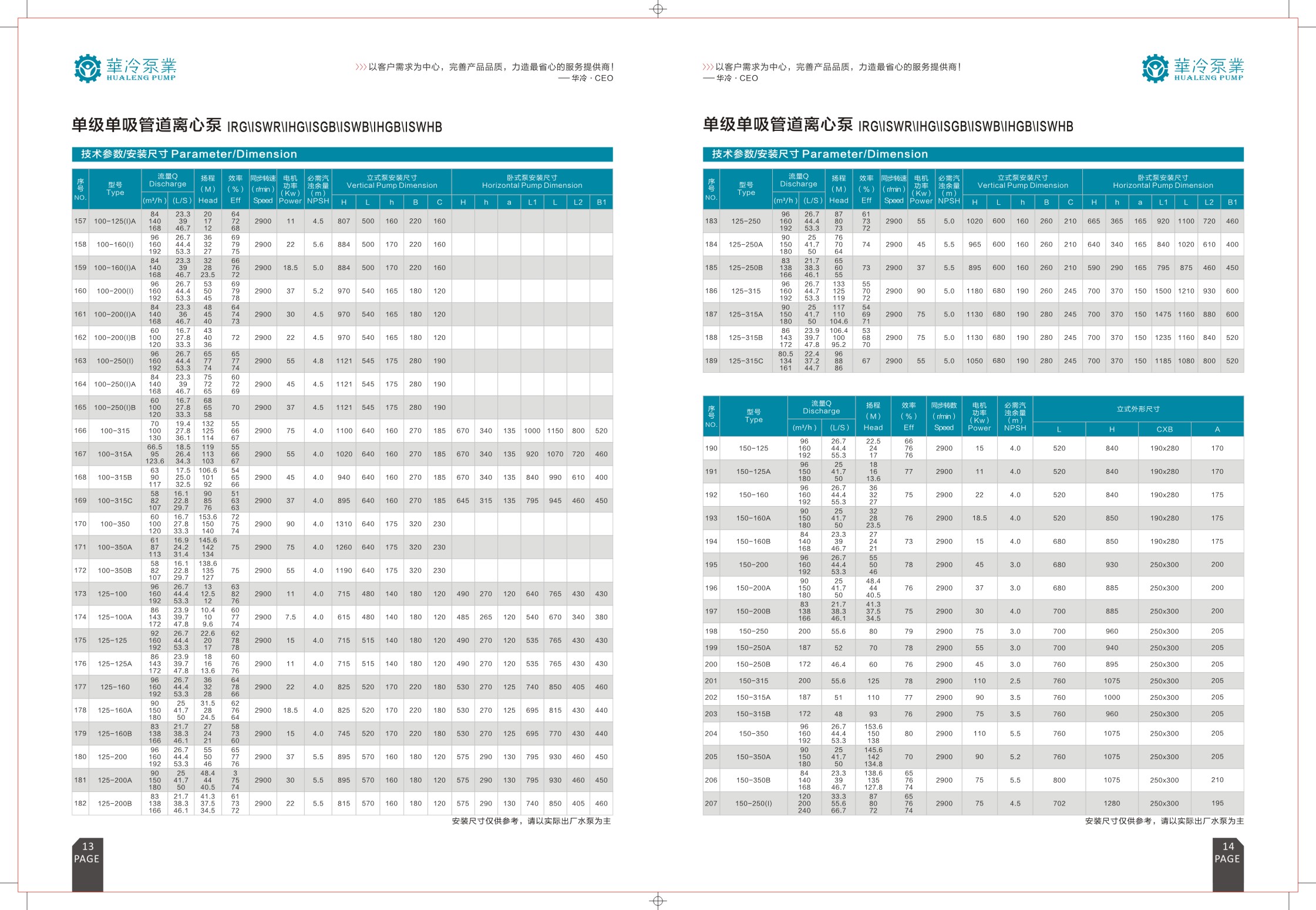华冷泵业 冷冻泵/冷却泵/循环管道泵