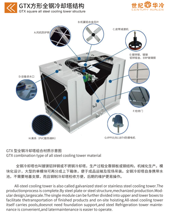 江苏世纪华冷实业发展有限公司 -顿汉马力牌 全钢开式冷却塔  简介